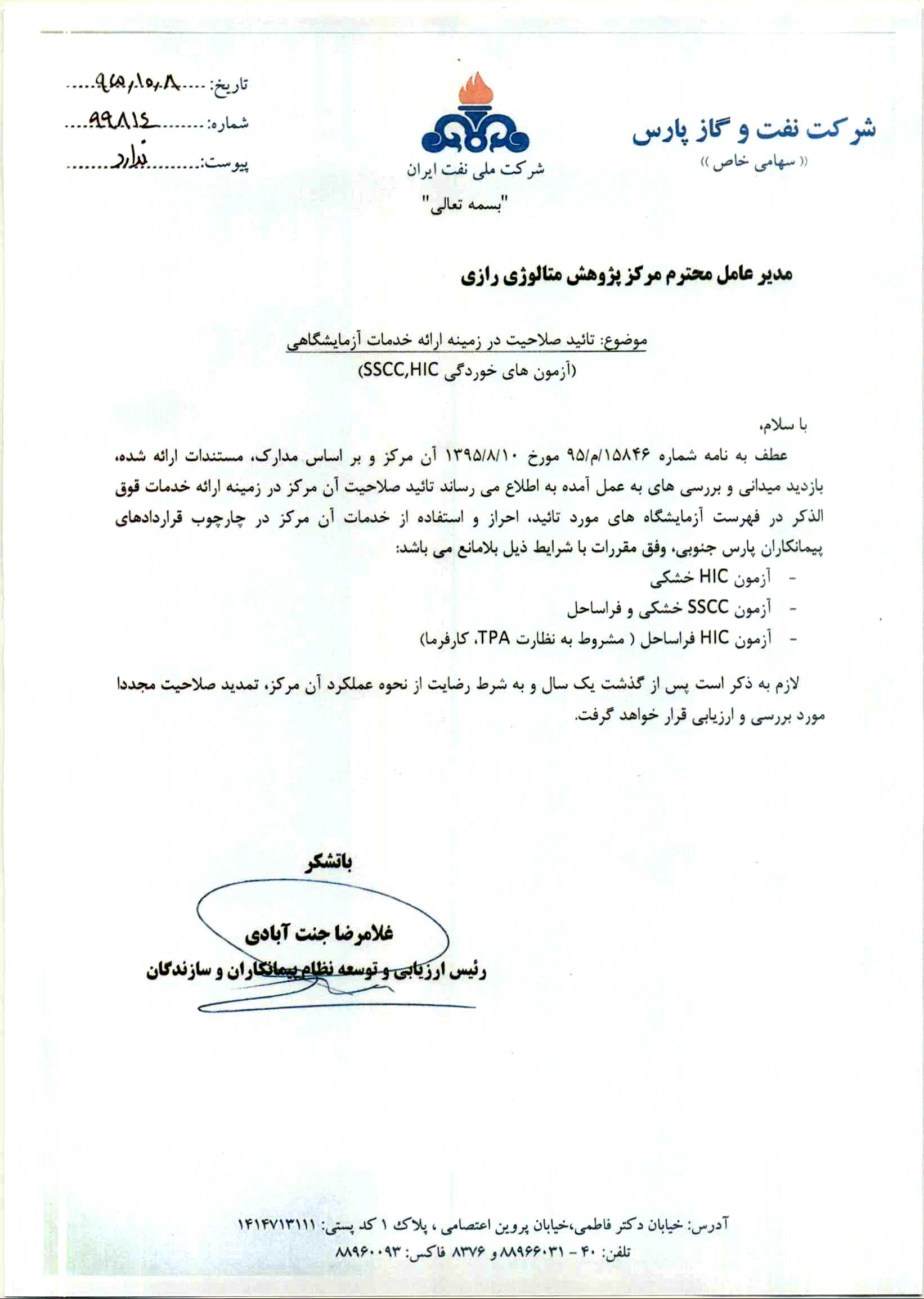 برگه قبول انجام آزمون غیرمخرب | تاریخ: 1403/03/12دانلود PDF